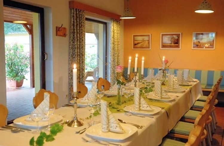 Im Erdgeschoss des Hauptgebäudes befindet sich das Restaurant mit, dass durch Schiebetüren mit dem Nebenraum auf bis zu 85 Plätzen vergrößert werden kann.