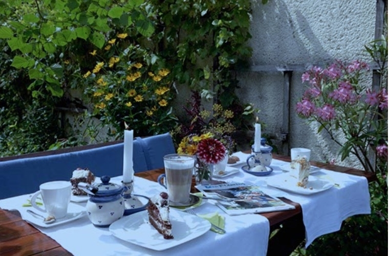 - Sonnenterrasse zwischen den 3 Häusern
