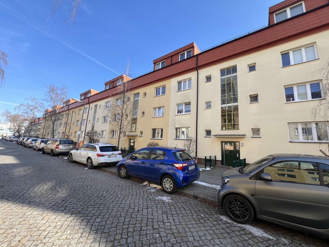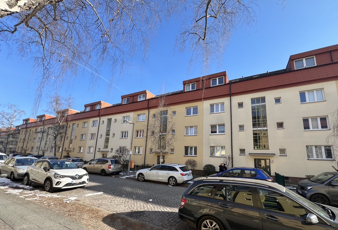 Diese attraktive 2-Zimmer-Wohnung befindet sich in einer historischen Wohnanlage, die zwischen 1953 und 1954 errichtet wurde. Das Gebäudeensemble wurde ursprünglich als dreigeschossige Anlage erbaut und 1987 um die Dachgeschosse ergänzt, die ebenfalls zu Wohnzwecken ausgebaut wurden.